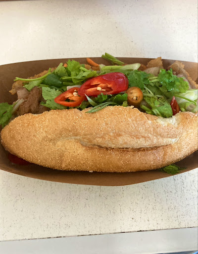 Read moreYou get what you paid for alittle more expensive comparing other banh mi around but you get more pork inside here. The crackle part was crispy and good amount and every bite came with the crumble of the bread which tasted good. Addition of chilli is good. Customer service is really friendly and they have interesting decor for what the place is. Interesting thing to note is I noticed some pickled onion strips of a layer inside which was really nice and worked well with the banh mi my first time having that in one. There was a lot of fat pork pieces though unfortunately and I’m not a huge fan of eating the fat parts I know some people like that though. The carrot lacked flavour as well. I also tried the Viet coffee for the first time and it’s too strong for me but I don’t drink coffee so for a coffee lover who likes strong coffee I think you’ll enjoy it just ask one of the...