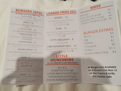 Ā Ā Ā Read moreFood was sort of ok - chips were soggy, burgers tasted ok but they got a couple of them wrong. One with unwanted tomatoes and the wrong sauce, and I couldn't find the mint Mayo in my Lamb Burger. We got there about an hour and a half before they closed and they'd run out of Beef Brisket and Pulled Pork The they gave the cheese Burger loaded chips that would have completed our order to another couple who'd ordered after us - we had to wait for them to fry another batch...
