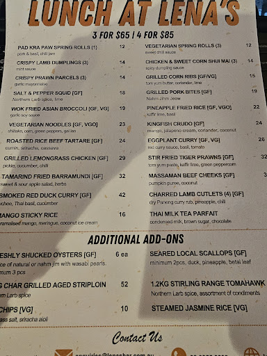 Read moreMy wife and I had been to Lena’s once before & were very impressed, so we chose this restaurant as the location for our son’s first ‘fancy’ dinner out in the city. I made mention of this to the manager as he greeted us before being seated. From that moment the staff went out of their way to engage with my son, ensuring his night was great – a few little jokes here and there, some casual conversation & checking in with him to see how he was enjoying his meal. He was made to feel as though he was an important part of the table and not just a kid, which was brilliant to see. When the staff discovered something was not quite to his pallet (a touch too spicy for a fussy young man) they unexpectedly popped back with a replacement dish more to his taste, which he loved. Make no mistake, the food is great here. The restaurant has a great feel that would be perfect for a date night or a catch up with friends or family, but the level of service we received was a standout for me, and especially my young man. “That guy was so friendly, dad” he beamed as we left. We will be...