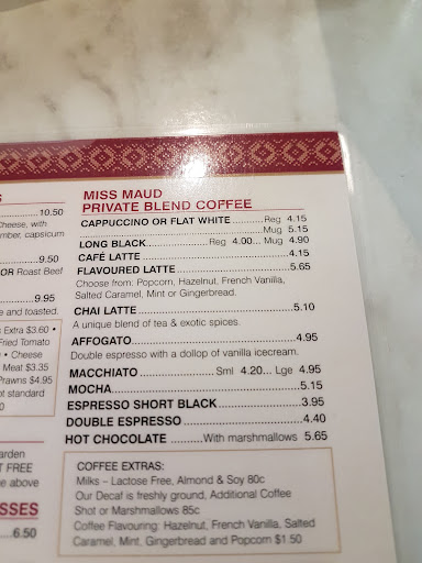 Read moreMonday, 10 February 2020 @ 11:10. They have a takeaway special - bacon and egg sandwich with a regular coffee. Before I paid, I asked the lady if I could sit down and eat it in the seating area (that was legit 3/4 EMPTY). All I wanted was a table to sit at so I could comfortably eat THEIR food. She said no, because there are different prices that apply to the seating area for services such as, having your food come on a plate. I clarified by noting, I wouldn't have a plate - I would just be happy to have my take-away packaging (that I offered to take with me when I go!). she still said no, and said that I can't sit down. Well, right in that moment, I realised why I had always bypassed Miss Mauds (deliberately chosing to eat elsewhere). I said "no worries" and I walked right over to Soul Origin. They have a more pricey deal, but I would prefer to pay the extra money and give them my business, because, they clearly care more about customer service then this stuck up place does. Think about it, you just lost current and future business because you arrogantly refused to let one of your own paying customers sit down to eat your own food! Heck, I was even contemplating getting a cake slice to have with my coffee after eating my sandwich! Idiotic, just...