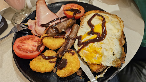 Furthermore, the overall quality and quantity of the breakfast offerings seemed to have declined. The eggs served were notably small, and the hash browns had been switched to a less flavorful, triangular off the shelf brand. It's concerning that dietary considerations, such as a mushroom allergy, are not taken into account. Instead of offering a suitable alternative, the restaurant opted to simply omit the mushrooms and charge extra for any additions, without offering a price reduction for removed items.