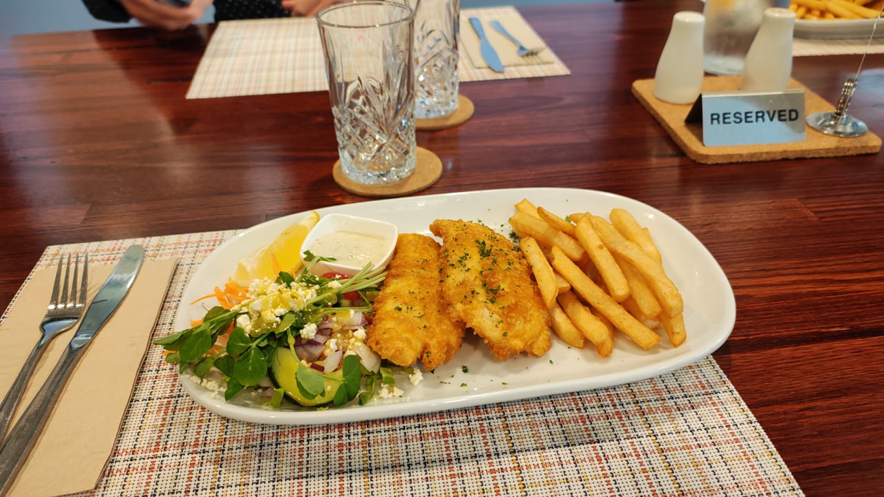 Read moreGreat service but few things to improve. We booked a table for 4 few days in advance and ended up being stacked on two tables against the counter which was absolutely ridiculous but thanks to the waiter we managed to move to another table once it has cleared off. Don't overbook the dinning room it will only give a bad experience to your customers. And instead you should line up few stools so people can dine at the counter. Food is well cooked but way too pricy ! Nothing justify a fish and chips for 45$... 30 should be a max for what it is ,good but nothing different than a pub meal. Also the menu has very few options for a seafood place and you better order from the take away. Well done for sourcing local products, it is always a plus ! The decoration is debatable, why is there a tv ?! we are not going to the restaurant to watch the footy. And I won't talk about the eiffel tower, the water fall and the insulting frame people on a special diet because it is probably personnal taste.The light is way too bright and please, you can do better on the menu presentation. You have those nice leathery books for it. why choosing this aggressive orange empty pages with hand writted added dishes. Black on white with spaces between the lines so the text isn't all stuffed on the top of the pages wouldn't take much and would add a lot to the experience.