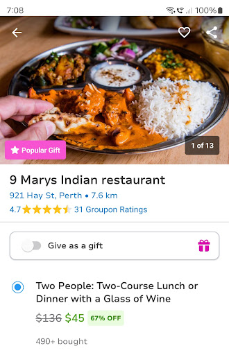 Ā Ā Ā Read moreMy husband and I love Indian food and on a whim (I haven't looked at Groupon for years) I booked a $45 voucher touted as $136 value. Hah! The voucher was to have included entrees (chicken tikka and veg samosa which on the menu came with 4 pieces each). We were given ONE piece of each to SHARE. We ordered an additional chicken tikka which, surprise surprise, came with 4 pieces. The 2 mains we chose - Butter Chicken and a Potato Curry arrived in teensy little bowls with probably 4 pieces of chicken in one. We were given ONE small bowl of rice to share, and one piece of naan which was average at best, The 'house wine' was meh - I asked what kind of wine it was and the manager - who barely cracked a smile the whole time - wasn't very convincing when he said he thought it was a cab merlot or a sav blanc. When we added up the cost of the dishes we received from the menu, it was approximately $88 AT BEST if you include the 2 glasses of crap sav blanc. Also, were were not offered any water for the table, I had to ask for it. Sure, this sounds like a great deal, but a) the portions were pathetically small, and b)where on earth was the extra $50+ of value were supposedly getting from this '67% off' deal? The main dishes and the chicken tikka were tasty, nice flavours. But we did NOT leave with a good taste in our mouths after the FALSE ADVERTISING - we would have preferred to spend $100 at one of our local restaurants who serve good wine and smile at...