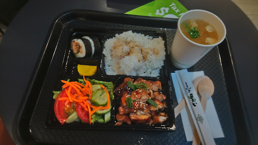 Located in Belmont Forum Food Hall. Dine in or take away. Service: already pre-packed, so good for take away. Long queue when I came, but not to wait long for bento. Can get wooden chopsticks/spoons at cashier if need. Teriyaki Chicken Bento, $13.5: good portion. Don't expect high quality for food court food - Edible. Pickles: 2 thick pieces. Normal. Miso Soup: Lager portion than other shops, but rather blend even after stiring. Good to have filings in the soup. Sushi: 2 pcs in the bento. Wasabi and soy sauce pack was beneath the sushi. Normal texture is same as other sushi take away shops. Mushy but firm. Chicken with mayo was the filling. Not bad. Salad: pre-made. Slightly watery. There are carrot, cucumber and lettuce, mixed with wholegrain mustard. Rice: with some sauce. Mushy, and formed "soft rocks". Can't enjoy this. Teriyaki Chicken: normal portion. Thin cut. Some had a bit burnt. Sauce was good, not...