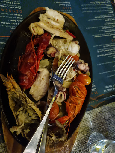 There was no sizzling to the seafood platter. I'll break it down as precooked, frozen, then reheated on what seemed like more than 1 occasion before it was served up. You couldn't use this a fidhing bait to catch a toad fish. The overuse of Chilli couldn't even mask how disgusting it was. This is the first time I have ever stopped eating a meal. Squid and fish were both overcooked. I ate the prawns simply because I felt disgusted that I had paid for this. I didn't touch the freshwater yabbies that were attempted to be passed off as lobster because I could tell it was boiled, then frozen, then added to the frypan with the rest of the stuff. I took a gamble on eating the bug tail in hoping it was hot enough to not give me food poisoning (yet) because it smelt like it probably is going to.