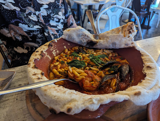 Read moreEven though everyone in our party ordered the same dish, we were all more than satisfied with the meal. We had a seafood pasta bowl that came with a pizza dough lid that was browned in the pizza oven. Let me say that the opening of the dish was incredibly dramatic with many open mouthed gasps. As exciting as the reveal of the dish was, the food more than surpassed the surprise. It was so delicious. Beautifully smooth tomato sauce smothering handmade pasta and generous amounts of seafood that tasted even better when scooped up in the bread. Had we known how big the portion was, we probably would have ordered one bowl and a salad. For starter the arancini were so tasty and the prawn pizza was excellent. Also, the service beats almost any other restaurant in Perth. The staff were attentive, friendly, approachable and knowledgeable (it helps to be Italian in an Italian restaurant) without being too familiar. They walked the balance perfectly. We will definitely...