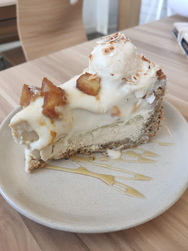 The cheezecake was not too sweet, which was nice, but I found the flavours weren't very punchy. It was pineapple and coconut. The base was nice and crumbly with flax or linseeds added. The texture of the cake was a little bit gluggy, in the way that coconut cream can be a little bit slippery. Having said that, it was still creamy and not bad for a vegan cake.