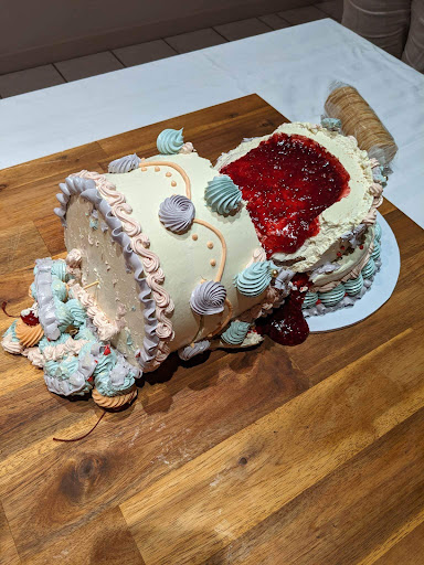 Read moreI am rather sad to be making this because it has such good reviews & their instagram looked gorgeous. For my 18th birthday I wanted a small heart cake with pinks & whites, simple sponge and jam filling. Paid around $200 for a mini retro heart cake with fancy piping and edible pearls, we thought it was pretty reasonable! On the website & confirmation email they said we would be contacted when the cake was ready for pickup on the day booked. Called them around 8:50 AM and they told me that after the confirmation email there’d be no more correspondence, just come pickup the cake on the day booked. A bit inconvenient but went to go pickup immediately. When given the cake it looked super cute, I was so happy for it! It had some black specks around but I think it was just how they made it. Got it ready and cut the cake, just to find out it was about 90% icing. A tiny bit of jam and the thickest layer of icing in the middle, as well as around the cake. It had the texture of cold butter and could barely finish a piece. We couldn’t eat it without removing chunks of icing until the cake pieces left was so small it was bite-sized. Tried to warm a piece in the microwave and accidentally melted all the icing around it, but was kind of shocked at how tiny the amount of cake was actually there. It is very pretty, but certainly...
