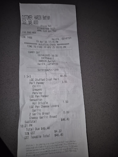 Read moreI placed an online order for delivery on 7th March at 6.30pm and was told 7.11pm deliver... the driver did not contact me until 7.49pm on his mobile as he couldn't find my house - I talked him through directions which he was on the phone with me which he ignored. I could see him turning around before me. Then he hung up on me as I phoned him back he drove straight past my son waving him down in the driveway. When I phoned him back he told me the Store Manager told him to not deliver my order and continue with the others as he had wasted enough time . I phoned the store and was told I would get a refund in 3 to 5 business days. This did not happen and I finally got hold of the Manager and was told 10 to 15 business days to get my refund... I didn't get my pizza or now my money...