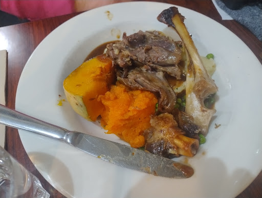 Cheesy Garlic Bread- nice thick slices of bread, soft but crisp on the crust, the cheese did not over take the taste of the garlic and was all well balanced. Chicken Parmigiana- came with chips and coleslaw, very nice thick steak chips with a good amount of seasoning. The parmigiana was tender and what ever their crumb topping is, is amazing, it was crunchy and gave the Parma a very nice texture. 12h Slow Cooked Lamb Shank- came with cheesy garlic mashed potatoes and broccolini in a red wine sauce. The lamb shank was cooked perfectly! The meat was so tender and just slid straight off the bone. The red wine sauce was well balanced and did not detract from the taste of the lamb which can so easily be done by mistake.