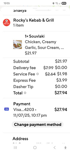 PS Rocky we read some of your reviews, Perth sucks for idiots expecting crappy processed meat in a Kebab with generic sauces instead of real greek meat with real greek sauce. You should rename your Souvlaki to Yiros/Gyros or Souvlaki Yiros. It's why I had to call you tonight before ordering and know I was getting the real thing.