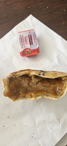 Letâs go to the pies Greg, which are breaking everybodyâs hearts. On Easter Sunday we tried to eat two steak and peppers and a standard meat pie. They were inedible with heavy greasy sodden pastry, a stewed concoction full of gelatinous matter; and a struggle to find a few morsels of tasteless meat.