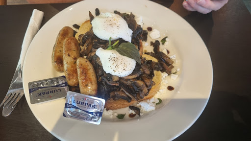Read more3/2/2005: 2nd time in 5 days. We ordered the same meals. Both were perfect. I specifically asked for my eggs Benedict to have the bacon not overcooked. It came out spot-on and the 3 eggs were nice and soft. I had a medium latte, extra hot. My wife had a coffee frappe which she said was nice. Any more of this and we'll need to go on a diet. We saw other meals coming out and they were also huge in their servings. 30/1/2005: Two of us had medium lattes, mushroom bruschetta, and eggs Benedict with bacon, then another 2 lattes. The first 2 lattes were more like cappuccinos. For the next 2, after the meal, I asked for less froth and a bit hotter. These came out perfectly. Thank you, Sherri. The mushroom bruschetta was delicious, with HEAPS of mushrooms. My eggs Benedict came with 3 eggs (rather than the usual 2 from other places), and heaps of delicious sauce. One egg was perfectly soft, the other two bordering on hard. The bacon, while HEAPS of it (yum), was mostly overcooked. It was hard to slice, so I has to cut it on the plate rather than cut it on the bread. All in all we would come back, but I'd ask for the bacon to be slightly less cooked. The eggs I could live with as is. Staff were friendly and service speed was...
