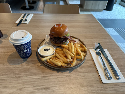 The fries were crispy and golden, accompanied by a tasty dipping sauce. The ambiance of the restaurant was inviting and clean, making it a pleasant place to relax and enjoy a meal after a long work shift. The service was prompt and friendly, ensuring that I had everything I needed. One small note: the portions were very generous, making it perfect for those with a big appetite!