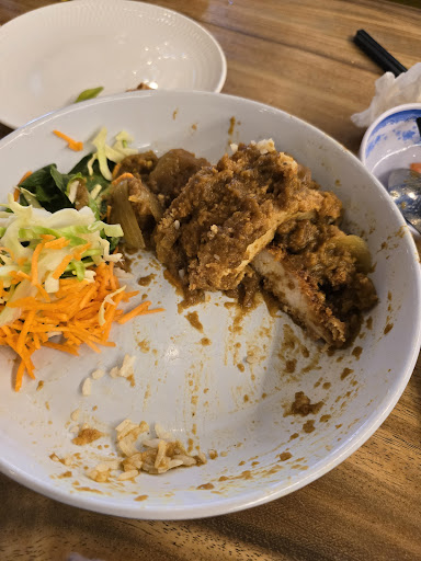 Really nice looking place with absolutely lovely staff. They do takeaway, so be patient when ordering as wait times for items not on the sushi train may be longer than you are used to. I had their Rice tea, which was served in a very cute cup and teapot. It was simple, but nice tasting. Next, my partner and I got the Satay Chicken and the pork spring rolls. The spring rolls were $9, which I feel should have been marked at maybe $6 as the chicken was $9 and way more food. It was a bit of a wait for those, but not so long that I wanted to leave. We asked about them and they came out shortly after with much apologies. My partner enjoyed the chicken and I loved the spring rolls in the chili sauce. My main dish was Japanese curry with Katsu Chicken and that was delicious. I love the way they cook the Katsu Chicken. My partner ordered the Mi Xao and he didn't dislike it, but he didn't know that it was in a jelly textured broth. I had a few bites of it and it was quite good. He didn't enjoy the texture and the description did sound like it was a dry plate. I would definitely order it for myself as it was very tasty and beautiful looking. I saw a few of the Signature Sushi plates that came out and they looked delicious as well. I don't think my partner would go there again, bit I would. He's...