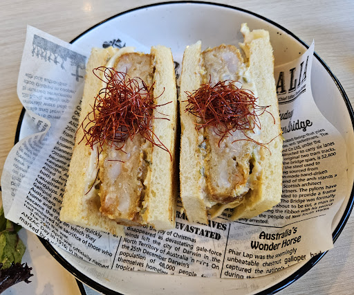 Read moreVenue : free parking at street. Nice layout. Spacious indoos and outdoors. Not packed. Cozy decoration. Very relaxing. Clean and tidy. Background music. Quiet on weekday mornings.--- 7.6/10 Service: Order and pay at the front desk or through QR code. Tap water was provided when seated. Nice staff. Normal waiting time for food and drinks. All necessary utensils and serveitte are in the buckets on each table. I don't like putting the teaspoon (for hot beverages) onto the table. But ok if the table is clean --- 7.2/10 Good design of the menu. Food: Korean & Japanese Fusion. Lunch starts at 10 am. The lunch menu is more attractive. We were hungry, so we couldn't wait. We ordered the signature dishes from the "all day" menu. Good presentation, same as the photos of the menu. Normal portion. Acceptable prices. Wanna try lunch next visit for sure. Roast Beef Toast, $24: It's an open sandwich. There are 3 pcs of roast beef, pickles, crème fraiche, shaved Parmesan, cucumber slices, pine nuts, croutons, and mixed salad The bread is slightly thicker than the bread of prawn katsu sando. Pretty healthy. --- 7.2/10 Prawn Katsu Sando, $ 18: Katsu prawn with some cabbage, pickles, and chili aioli. It's not whole orawns. The bread without crust was slightly toasted. Not bad. --- 7/10 Iced Coffee, $ 7.5: Use glass strew, which is clean inside clearly Hot...