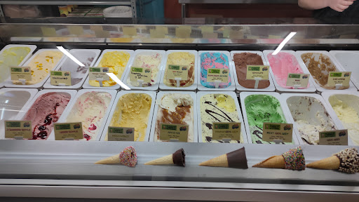 As I step into the vibrant and quirky space, I can't help but be captivated by the playful decor. The walls are adorned with colorful murals depicting swirling ice cream cones and dancing spoons. The air is filled with the sweet scent of freshly made waffle cones, their warm, sugary aroma enveloping the room like a comforting hug.