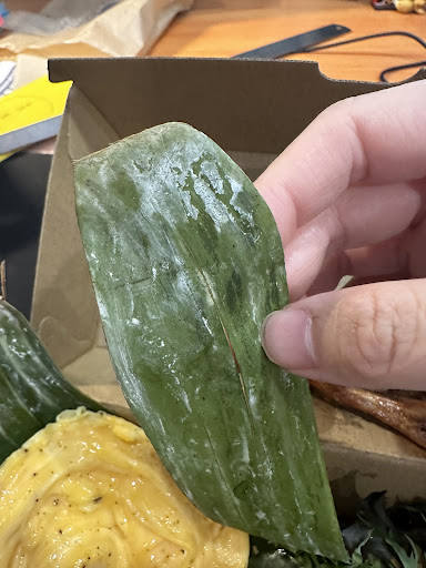 Thanks for replying my review a year later. It took a year for figuring out the explanation apparently. Here is my point for your answer. I am confused about the explanation for the leaves that have some white marks on. As a customer who's starving and waiting for the food, do you expect the customer to take the leave to a laboratory to find out what the white marks were? or you think the customer should assume that was "clean" marks and should just eat the food without question why it looked dirty.