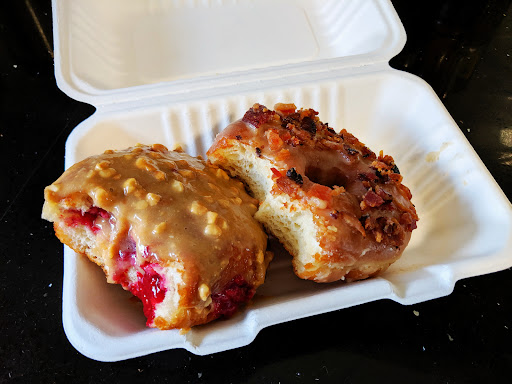 Standard doughnuts -Berry lemon was okay, colour was awesome and looked like a natural glaze but lacked a wow factor. Too much citrus, sourness overpowered everything. Can use more rind and less juice? Vanilla? Cinnamon some sort of spice too help round it? -maple bacon. Was nice but did not taste like it wad fresh made that day. Dough had dried out and started to taste stale. -vanilla. Nice glaze but again tasted like it was old and not fresh made that day.