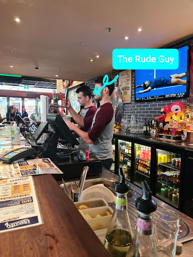 Read moreRude service and terrible food! My colleague was just placing an order as I walked in, but seeing that there was a queue of people waiting, I did the sensible thing and went to stand by the bar at - what seemed to be - the "tail-end of the line". The place was busy being peak hour just before 1pm but there was just one person behind the bar serving everyone. After a long wait of everyone before me getting served, the guy behind the bar skipped me and served a big bloke who was standing behind me. I had noticed that the big bloke behind me was on the same table as the person before me, so I decided to let it slide. Then the rude guy behind the bar didn't even look my way and walked past me to the other end of the bar. At this point, I called him out to advise him that I was actually in line before the bloke he'd just served, but he merely stopped and turned around to look at me with a so-what look on his face then continued to walk to the other end to serve another big bloke. Then another guy came behind the bar to serve as well but he served someone else as he pleased when, again, I'd been standing there waiting patiently for my turn before everyone else standingby the bar. When the rude guy'd finished serving the other bloke, he finally came to serve me with a simple "Sorry (not sorry), what can I get for you?" Not only did my order come late after my colleague's burger went all cold, but the chicken bites were so salty that they were stinging my tongue with every bite. This wasn't the first time I'd been here, and I've had much better service and food before, but I shall not be returning after today's appalling experience. If you're short staffed during peak hour, get more staff on the roster as it was blatantly obvious from the staff's expressions and gestures that they were tired and would rather...