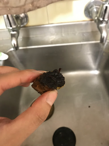 And the braised pork is totally burned!! It’s all black outside and tastes bitter and weird!!🤮🤮