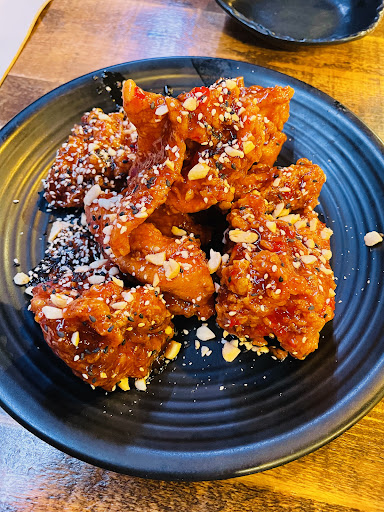 My parent loves the tofu kimchi bibimbap, it's very refreshing. I ordered jajangmyeon and that too is very satisfying. The noodle is cooked right, the blackbean sauce has mild taste together with the sweetness of the brown onion. What was surprising me was the fried chicken. We ordered the honey sauce flavour. Having tried different korean fried chicken expect something rather dry with sauce coating the chicken.