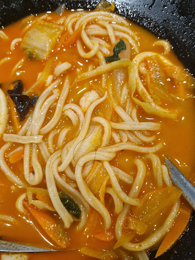 First of all, customer service was great for us. The lady greeted us with a huge smile and acknowledged us with a 10 mins wait for a table (we didnt have a booking so fair). After we were seated, we ordered immediately as we knew what we wanted, however the food took about 40 mins to arrive (no joke!) we were really tempted to leave but thought about the kind gesture we were served with so we stayed. The food came finally but it just looked off. The kimchi soup we had was not only filled 3/4 And it was salty as. It tasted like it was left boiling for too long so the taste was so condensed and the amount was little. We were so confused and told one of the waitresses and she started questioning us and wasn't apologetic or understanding at all. We ended up telling her to dilute it a little with some hot water. Hot water Took another 10 mins to come too. It was quite busy but wouldn’t say it was packed bc the tables beside us were free.