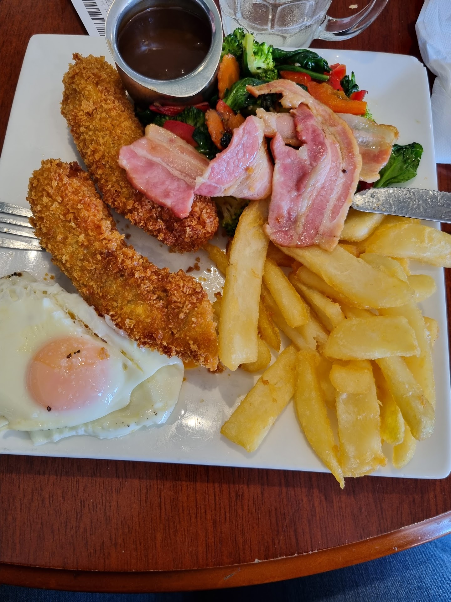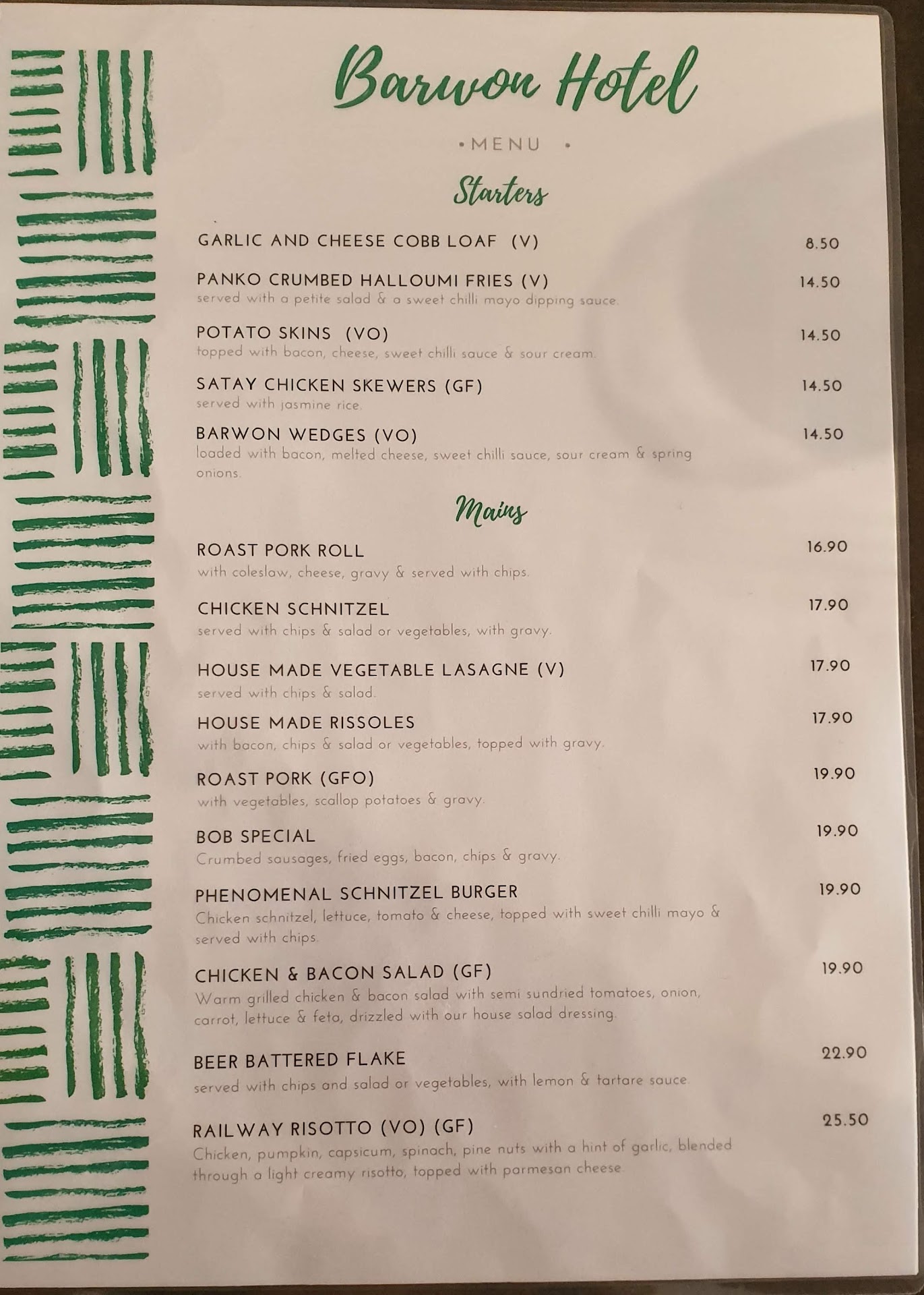 Read moreThe Barwon Hotel may look a little grungy, but we were happy to find it a welcoming place for lunch. We sat in the bar dining area, with a nice wood fire (it was unseasonally cold for October), and put a couple of bets on while we waited. The kids meals were served super fast and really nice. The veggies were lovely, fish and chips generous. We both had Bob's special. The size was HUGE, and the panko crumbed sausage when dipped in egg yolk and gravy was seriously too die for. Chips excellent too! Crumbed sausages used to be a thing in the 80s/90s, they should still be a thing now. They also have Kievs and a range of good looking schnitzels. Staff and locals were very welcoming and friendly to top it off. We'll be...