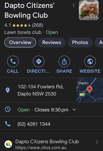 This is a pretty old worn out old South Coast Bowling Club that needs refurbishment and needs to come into the New Millennium at least! However the friendly service and lovely atmosphere at the club more than makes up for that! We walked in and weren't welcomed By Your Friendly Neighborhood bouncer which was not good for a licensed club. We enjoyed a typical Club type meal in their very small, cramped and crowded bistro. The food was pretty ordinary but unfortunately at a pretty exorbitant price, but about what you expect to pay at a club these days with all these Master Chefs in the kitchen who are justifying their existence and cause the prices to go up so that you can have a pretty arrangement of food on your plate but not necessarily get a good meal! Very Asian oriented they couldn't even cook a T-bone steak which actually could have been the sole of a shoe in Disguise, cooked Medium but still raw at the bone!! I think we'd rather go to...