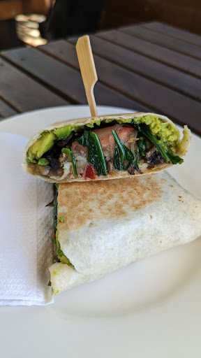 Not many vegan options, actually we were only recommended to have a vegan wrap. But it was super tasty! Our 2yo son had just avocado slices we asked separately for, and sweet potato fries with a simple ketchup (the girl was so friendly, she even reminded me and asked if I wanted them with no salt for a little one). Not too bad food, but not super great too. I wish they had vegan burgers, tofu in asian sauces, noodles, vegan meats, more fresh veggies etc. It's so easy to cook having these products in the freezer! Coffee was not great. We were impressed by them having a vegan hot chocolate, but it was too sweet. So, 4 stars is a fair...