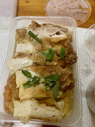 Wow. Enough food to feed a family. Seriously, there's like a full chicken inside that container! Lovely lady who served me asked if I wanted Prawns in my fried rice, I did not, it was great to be asked and not just given them!! Anyone who knows me, knows my love for traditional fried dim sims. I got 3 fried dim sims (the round circle on the plate) they were far from my usual in appearance, but I'm converted, they are delicious ๐ Highly recommend this place to all. The food and service are top notch/quality. Atmosphere? I wouldn't know, I was there way before normal peoples "dinner time", mostly because I hadn't eaten yet that day & I...