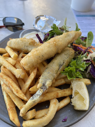 Read moreWe visited on Anzac day and it was super busy. Its delightful to sit by the beach and the food cam out super fast. Perfectly cooked fish and chips. You order at the counter and the service was a tad slow at first. Staff kept looking at me standing there and walking away. This was down to how busy it was though which is why Im still giving 4 stars. Some of the drinks we ordered were alcoholic and there was a real disconnect between who could serve them and they took forever to come to the table i needed to chase them a few times. The team didnât seem to have a record of where they were going. But they were all lovely and apologetic and just trying their best on a really busy day. I totes recommend this beautiful place right on the beach next time Im getting cake and coffee the cake display had a...