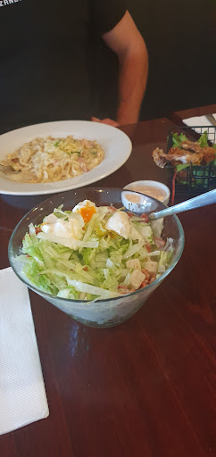 Perhaps this is a better option for takeaway pizzas as our dine in experience was very poor. We arrived not long after opening hours and after a somewhat awkward greeting from the staff we were seated and perusing the menu. The decor is very outdated and tacky. Lots of dust hanging off the fake grape vine over the front windows. Perhaps if there was music going it could have possibly drowned out the yelling coming from the kitchen. We ordered 2 drinks, wings, caesar salad and carbonara. None of the food was worth the money or the stomach room. The staff member that delivered our food may has well have thrown it at us. She dumped it on the table and walked off without a word. The wings were dry and the bones inside were black from overcooking. The carbonara was bland and overly creamy to the point it could have been a soup and the salad was the size of a side and consisted of mostly iceberg lettuce, a few peices of bacon, a very hot poached egg that had sat on top so long before it was delivered it had wilted the lettuce. There was a drizzle of dressing and there was no parmesan even though it was listed on the menu. Considering the amount this meal cost, I was more than annoyed when I was still starving after we finished eating. This all cost approximately $85 and the owners should be ashamed of how much they are charging for such mediocre food...