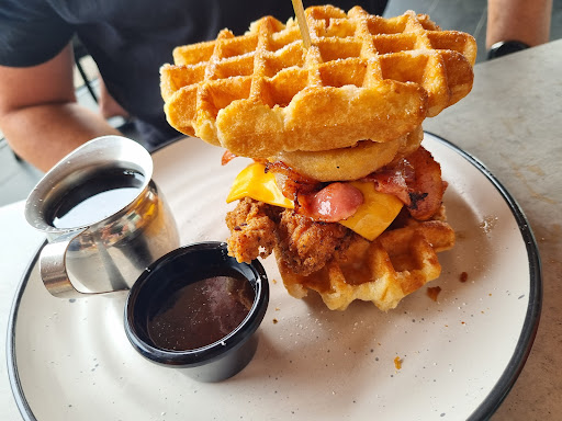 The Burger & fries were a oil dripping, greasy heart attack meal so much that the fried chicken, Beef & Bacon seemed to be all drowned in the same deep fryer oil then thrown straight on to the bun that became inedible soaked & absorbed with the oily fats that after a few bites having to push the remains to the side as it was sickening to the stomach.