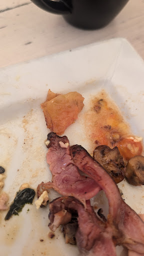 The food was no better. I ordered scrambled eggs, which arrived weeping water—completely unappetizing, and the eggs were overcooked to the point of being nearly inedible. As if that wasn’t bad enough, the portion sizes were a joke. Want a tiny teaspoon of spinach? That’ll be $4 extra. A tablespoon of baked beans? Another $4. The price gouging is unreal. They’re charging outrageous amounts for sides that wouldn’t even feed a child. It’s offensive. And after all that waiting, after all that money spent, the meal was just a soggy, overpriced disaster.