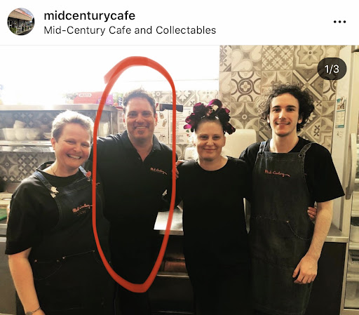 We have witnessed him on multiple occasions speaking terribly to the lovely young waitresses and baristas and even more shockingly to the customers, especially those with children. We have lots of friends and family who live locally and frequent Mid Century and they all agree his attitude really brings the place down. One friend even said if she sees him serving at the counter that day she wont even go in , she'd rather go somewhere else! That's saying something!!