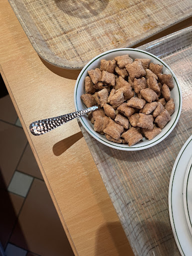 Read moreAbsolutely chaotic. This restaurant has the most inefficient method to check people’s food and charge them I have ever seen. You try to get your food not knowing where half of anything is, for instance the milk is not next to the cereal and is instead hidden by the hoards of people while standing in an obscure area not many people will see. After the journey of trying to find everything, you have to wait more than half an hour standing, holding a tray filled with food making your arms sore and food cold while you wait until you can pay at some sort of register where only two workers work making things extremely slow. After you finally pay for your overpriced cold food and stale cereal you sit down to eat. Most of the food is ok. The cake was edible but not great. If there was one thing I had to recommend in this place, it’s the watermelon and salad. And so you understand how overpriced this place is, a small bowl of cereal (picture below)...