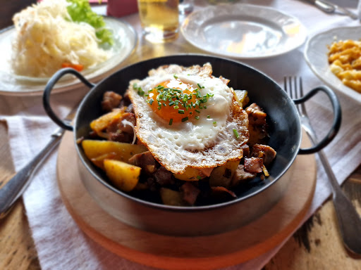 Well, what can I say. The Alm has 4,7 stars and it's not deserved. We waited 1,5h for dinner and the only meal that was all right was the Schnitzel. The Zwiebelrostbraten was a slim slice of meat resembeling the insole of my skiboot. It was good meat but poorly cooked and not properly seasoned. Futhermore it was drowned in sauce that wasn't seasoned and served with potatos, we payed extra for and also not seasoned. My friend had a salat with a supermarket bun from the day before. However the dark beer was pretty good. Overall the Restaurant of the Alm doesn't deswegen more than 1 star. For the Zwiebelrostbraten go to Conny's instead.
