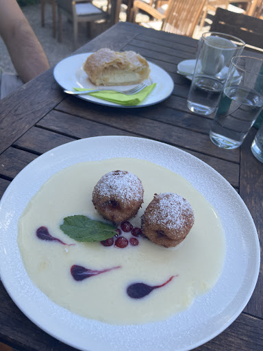 Bei meiner Bestellung – dem Saibling in Aspik – hätte ich mir etwas mehr Würze, etwas mehr Vinaigrette oder allgemein Aroma erhofft, aber die Gerichte meiner Begleiter schmeckten vorzüglich. Auch die Kaspressknödelsuppe des Kindes geriet hervorragend und wurde mit Priorität vor allen anderen Gerichten serviert. Dafür gibt's Pluspunkte.
