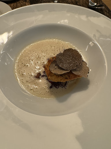 Read moreAm 27.12. waren wir zum Ersten, bestimmt aber nicht zum Letzten Mal bei Stefan Haas Fine Dine zum Abendessen. Von Anfang bis Ende alles top. Es gibt nur wenige Tische, daher lohnt es sich zu reservieren, sie hatten an dem Abend aber auch noch einen Tisch fĂŒr spontane Besucher ĂŒbrig. âșïž Das MenĂŒ kann sich jeder individuell anhand von Beschreibung der einzelnen Gerichte inkl. Skizze aussuchen. Jeder am Tisch individuell und was fĂŒr uns ganz toll war, es geht auch ohne Dessert đ Zu Beginn gab es ein Gedeck mit ausgezeichnetem veganen Bratlfett, einem Butter Buddha und der Haussalami sowie GebĂ€ck vom DorfbĂ€cker Maislinger. Danach gabs noch einen GruĂ aus der KĂŒche, wohl der Signature Dish, Ausseer Auster. Wir hatten als Vorspeise 2x Soufflierter Edelwels Zwischengang 2x 12h KĂŒrbis und als Hauptspeise 1x Rinderfilet und 1x Taube. Es war alles hervorragend und perfekt abgeschmeckt. Die Weinbegleitung welche uns die Dame des Hauses mit viel Hintergrundwissen fĂŒr jeden Gang speziell abgestimmt reichte rundet das MenĂŒ ab. Das Gesamtkonzept ist auf RegionalitĂ€t ausgelegt. Wir hatten den Chefs Table bei dem wir auch die Möglichkeit hatten in der KĂŒche Stefan Haas auf die Finger zu sehen, hier wird mit Perfektion und Liebe zum Essen / Produkt gearbeitet. Bei der Reservierung werden etwaige Allergien und UnvertrĂ€glichkeiten abgefragt und dann entsprechende Alternativen fĂŒr die gewĂ€hlte Speise genommen. Mein Partner hat eine SellerieunvertrĂ€glichkeit, daher wurde die Ausseer Auster leicht abgewandelt.