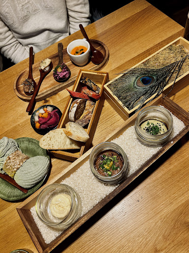 I didnât expect this culinary experience in a village of this size. Well thought out and constructed dishes with significant asian influence. They pay as much attention to flavor as they do to texture. They serve every table with a variation of 3 butters, warm toasted bread, pickled vegetables and variation of couple bite sized dishes that will tickle your tastebuds the right way. The appetizer options are even more intriguing than main dishes. I had trouble choosing just one as they all sounded very tempting. Out of 3 main dishes I tried 2. The asparagus plate stood out above the Japanese fried chicken. I regret not getting the fish option instead of the Japanese fried chicken which was a little underwhelming after the appetizer and welcome tasting platter. Donât get me wrong, it was tasty and crispy, but it didnât surprise me and compared to the rest of the meals it felt ordinary. The only thing that bothered me a little bit was that they didnât have menu in English which I would expect in restaurant of this quality. The servers had no problem with translating and explaining the menu though. The service was great and they presented every meal with enthusiasm and professionalism. I definitely recommend to visiting this restaurant and I will come back again if I find myself in the...