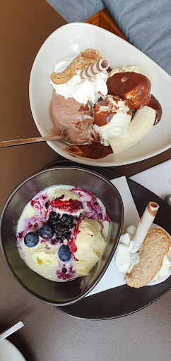 Fazit: Kuchen könne wir nicht bewerten. Auch wenn alles teurer geworden ist, kann ich nicht sagen, dass ich vom Preis-Leistungsverhältnis begeistert bin. Die Eisbecher a 9,80€ ist definitiv zu wenig von der Mengen-Anrichte-Leistung und aus dem fetten Siebträger kann man besseren Cappuccino rausholen.