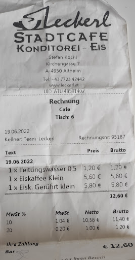 Das Stadtcafe ist seit vielen Jahren beliebter Treff für Alt & Jung! Das Gesamtpaket ist stimmig! Besitzer-Familie & Personal sind sehr freundlich, das Lokal bietet eine herzliche Wohlfühlatmosphäre und es gibt den ganzen Tag feine Getränke und Speisen. Vorige Woche waren wir mit Freunden Frühstücken. Die Frühstückskarte ist umfangreich und bietet was das Herz begehrt (gourmetmäßig ;-) Wie immer war alles sehr gut & frisch! Das Preis-Leistungsverhältnis passt gut und die Bedienung macht einen tollen Job! Vielen Dank dafür und bis bald! Wir können "Leckerl" mit besten Erfahrungen weiterempfehlen und freuen uns auf den nächsten Besuch....