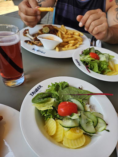 Read moreIch war an einem Sonntag mit zwei Freundinnen in Andau am See. Alles sehr schön dort. Um die Mittagszeit herum wollten wir beim Tauber im Restaurant schnell etwas essen. Es war recht viel los und das Personal wirkte schon beim Empfang überfordert und deutlich demotiviert. Erst konnten wir nicht draußen sitzen weil alle Tische voll oder reserviert waren. Schließlich haben wir gut 30min auf die Aufgabe der Bestellung gewartet. 2x Pizza 1x Gniocchi. Die Getränke waren schnell da, wobei ich im Burgenland noch nie einen weißen Spritzer mit Leitungswasser oder derart ausgerauchten Mineralwasser bekommen hab!!! Wir bemerkten dann, dass auf der Terrasse sehr viel viel freie Tische zur Verfügung gewesen wären, die übermotivierten Damen meinten dann naja wir können uns eh raus setzen… warum nicht gleich. Irgendwann kam die Pizza, nicht schlecht, aber ich hab definitiv schon bessere beim Lieferservice bestellt! Wir haben geschlagene 1std und 30min auf diese Pizza und die Gniocchi gewartet. Und anschließend wurden noch die Augen gerollt als wir getrennt zahlen wollten. Es war was los, aber überschaubar, trotzdem war das Personal komplett unstrukturiert und wirkte nur genervt. Den Eindruck den dieses Lokal machen möchte, den macht es nur zum Schein. Ein gutes Lokal steht und fällt mit gutem Service Personal. Ich habe mir mehr erwartet und gehe hier definitiv nicht...