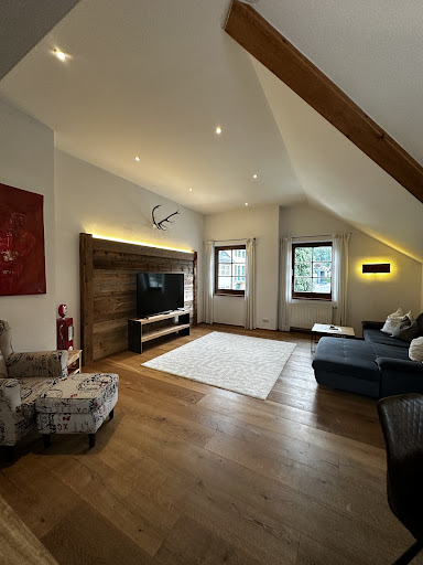 Read moreMy family and I recently spent 5 days in the upstairs 3 bedroom apartment. This place was amazing! Lots of space for our group of 7. One room had an extra little room with bunk beds and one of the other had a loft bed. Dry sauna, modern spacious living space, lots of free parking. Our host Simon had lots of recommendations for local activities and we enjoyed a delicious dinner at the restaurant downstairs the day we arrived. A washer/dryer would have been nice but we made do with the sink and large...