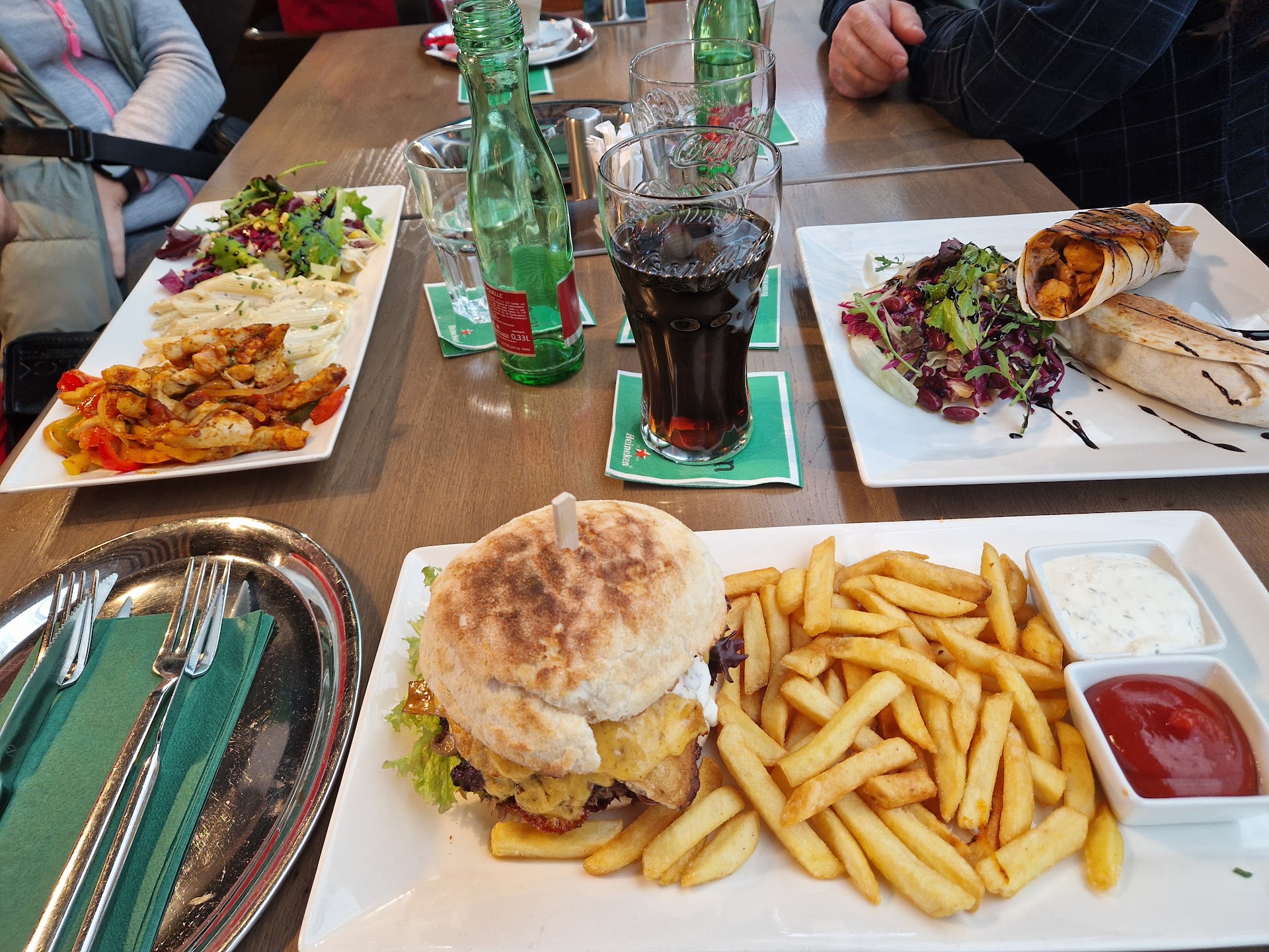 Ich würde Ihnen sogar 0 Sterne geben, weil es war eine bodenlose Frechheit. Ich bestellte mit meiner Frau etwas zu trinken und Nachos die sehr schnell gekommen sind. Als wir das die Nachos und die Getränke bekamen, bestellten wir das Essen. Wir haben knapp 1 Stunde auf das Essen gewartet und es ist noch immer nicht gekommen, also haben wir uns entschlossen einfach die Getränke und die Nachos zu bezahlen und zu gehen. Nicht mal das hat geklappt. Die nette junge Dame die den Anschein macht als würde sie alleine arbeiten sagte der Chef kommt gleich. Wir haben noch 5 min gewartet bis wir gesagt haben wir gehen direkt zur Kasse und bezahlen.