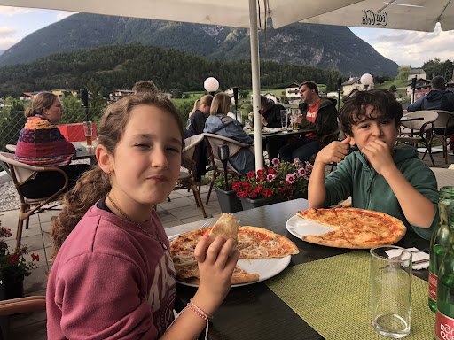 Read moreWe had a very good experience at this restaurant: what a place to sit a the lovely terrace located om top of a supermarket. It gives a stunning view on the surrounding mountains. So lovely to sit with loved ones, enjoying good pizza's and wine whilst evening falls and the mountains darken. Something went wrong with the order but the manager set everything...