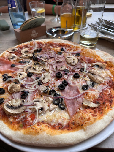 Am nächsten Tag sind wir erneut zur Pizzeria gegangen, da wir mit dem vorherigen Besuch so zufrieden waren und das Wetter schlecht war. Diesmal saßen wir drinnen, und leider war nur eine Kellnerin da, die sichtlich überfordert wirkte, obwohl nur zwei Tische besetzt waren. Wir mussten lange warten und wurden darauf hingewiesen, dass nur Pizza bestellt werden könne. Das war für uns kein Problem, jedoch erhielt meine Freundin zunächst die falsche Pizza. (Noch dazu eine Pizza mit Wurst, daher leider ärgerlich, da meine Freundin vegetarisch ist.) Die Kommunikation mit der Kellnerin gestaltete sich schwierig, da sie unsere Anliegen nicht immer gut verstand. Nach einiger Zeit erhielt meine Freundin dann doch die richtige Pizza.