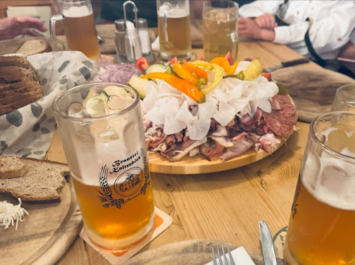 Wunderbarer authentischer Ort. Im 400 Jahre alten Bauernhaus mit schönen Biergarten. Eigene Brauerei mit prämierten Bieren, selbstgemachte m Brot, im befeuerten Ofen gebacken, uvm. Typisch österreichische Mostschenke selbstgemachter Most (=vergorener Apfel-Birnensaft) mit österreichischen Süßem aus der typischen Bauernküche. Zb Krapfen, Pofesen Der Wirt, Hausherr (treibende Kraft)Eckehart Kaltenböck Agrarmeister immer gut drauf, ist eine Marke für sich. Seine Frau Elfie geb. Schneeweiß aus Wildenhag vom Schlossbauern, vulg.) bringt enormes Engagement für Organisation mit (damit alles optimal läuft und auch Qualität im Auge hat), sie stellt auch die meisten Produkte wie Brot, Süßspeisen, Kartoffelkäse selbst her und ist seit vielen Jahren an Eckeharts Seite. Gemeinsam mit Eckeharts Söhnen die die Brauerei betreiben und fleißigen Mitarbeitern ( Mercy) ist dies ein großartiges Team und ein Lieblingsort in der Nähe...