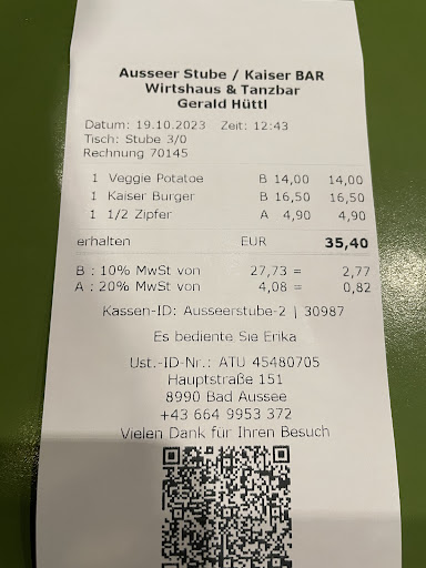 Read moreFantastic food, grilled chicken is the speciality of the house but many other Austrian disches available. Excellent quality, excellent prices and superfriendly staff. Cosy restaurant ambiance and little terrace outside. Directly next door there is a sort of traditional bar/disco in 70's style with music - sometimes live. Tracks can also be played on request. We had a 10 year wedding anniversary party there in hippie-style and it was especially decorated for us and hippie music :-) Only open Thursday, Friday & Saturday nights until last...
